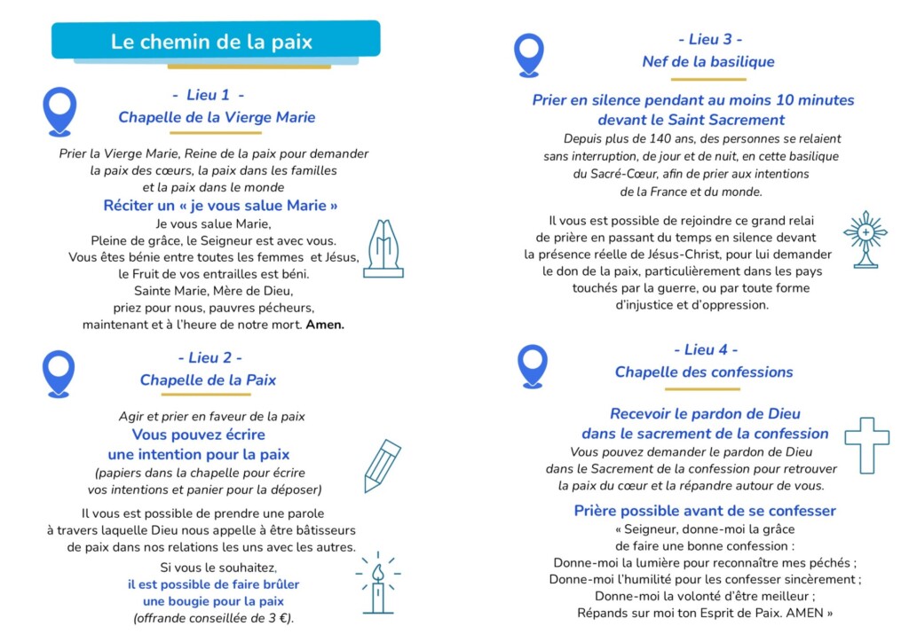 A travers une déambulation dans la basilique et différentes étapes, nous vous proposons un itinéraire pour devenir artisan de paix.